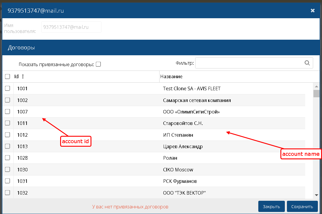 В разделе “Account mapping” выбрать пользователя, по имени  id или по номеру договора.