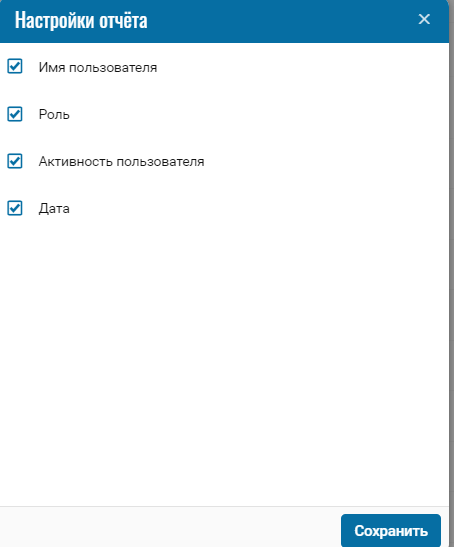 Отчет предназначен для отображения истории работы пользователя в системе.