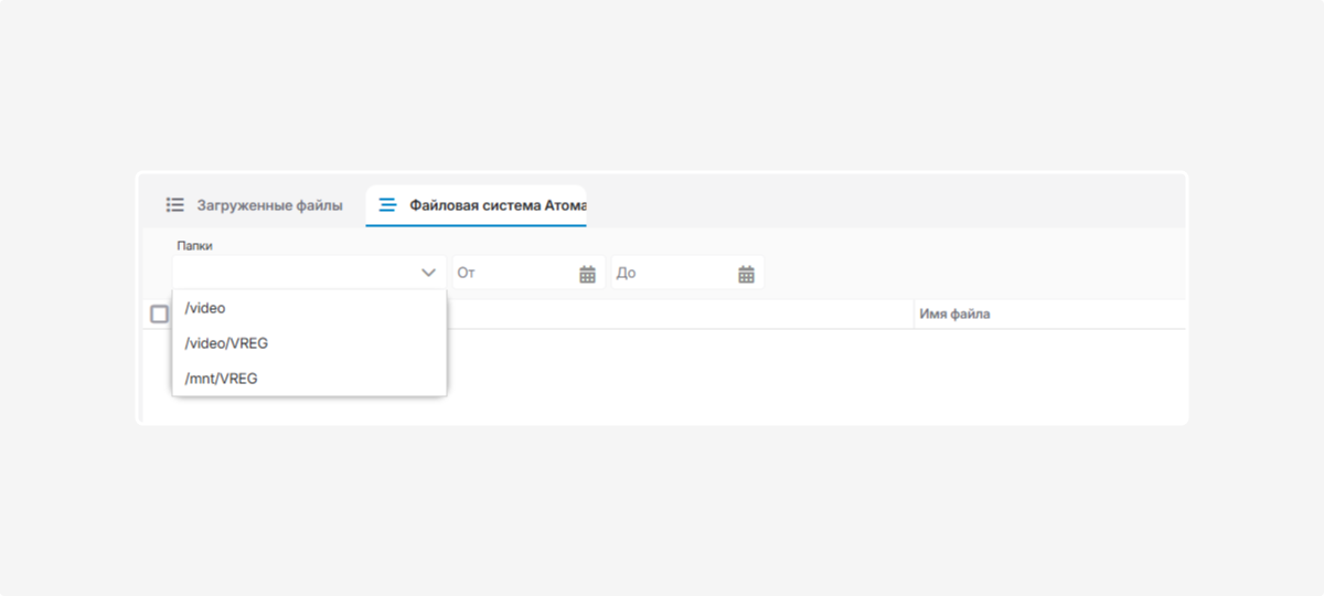 • Перейдите во вкладку «Загруженные файлы», где отображаются файлы, которые уже были загружены с Атома на сервер.