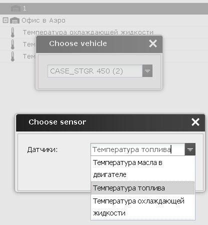 Выбрать объект и его датчик.