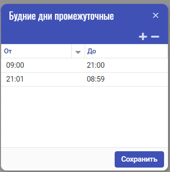 При добавлении новых объектов, эти настройки будут отображены автоматически во вкладке "Рабочее время".