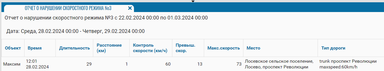• Контроль скорости (км/ч) - скоростной лимит, который был превышен;
