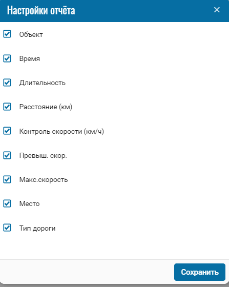 При необходимости можно отключить определённые части отчёта нажатием на иконку , при нажатии откроется меню, где можно отключить /включить определённые поля.