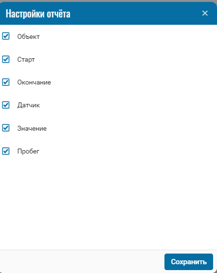 При необходимости можно отключить определённые части отчёта нажатием на иконку , при нажатии откроется меню, где можно отключить /включить определённые поля.
