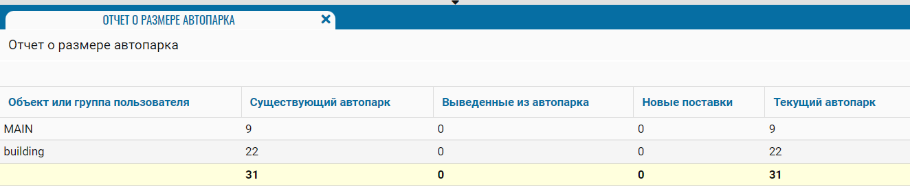 Отчет о размере автопарка — это отчет, который предоставляет информацию о количестве и составе транспортных средств, находящихся в автопарке компании на определенный момент времени.