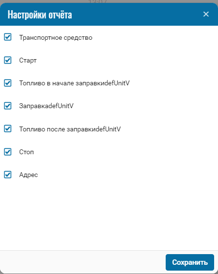 Данный отчёт предназначен для учёта топлива в начале дня и в конце дня.