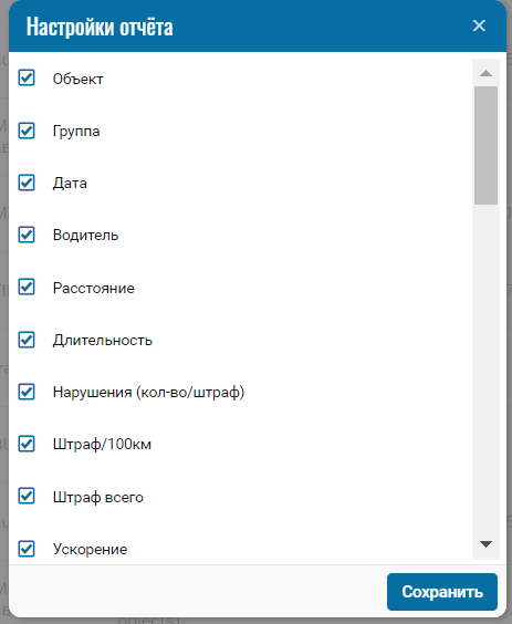В данном типе отчёта представлена сводная информация по качеству вождения.
