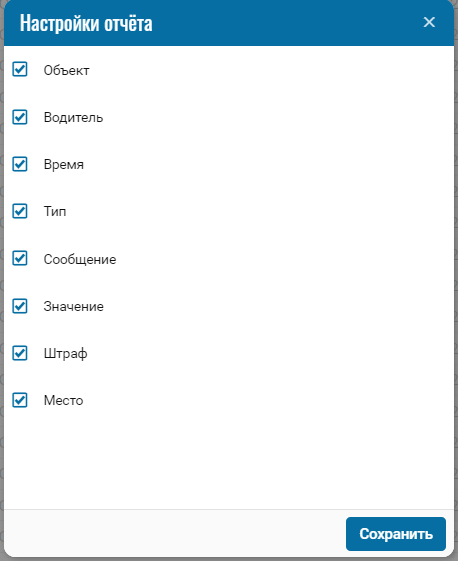 При необходимости можно отключить определённые части отчёта нажатием на иконку , при нажатии откроется меню, где можно отключить /включить определённые поля.