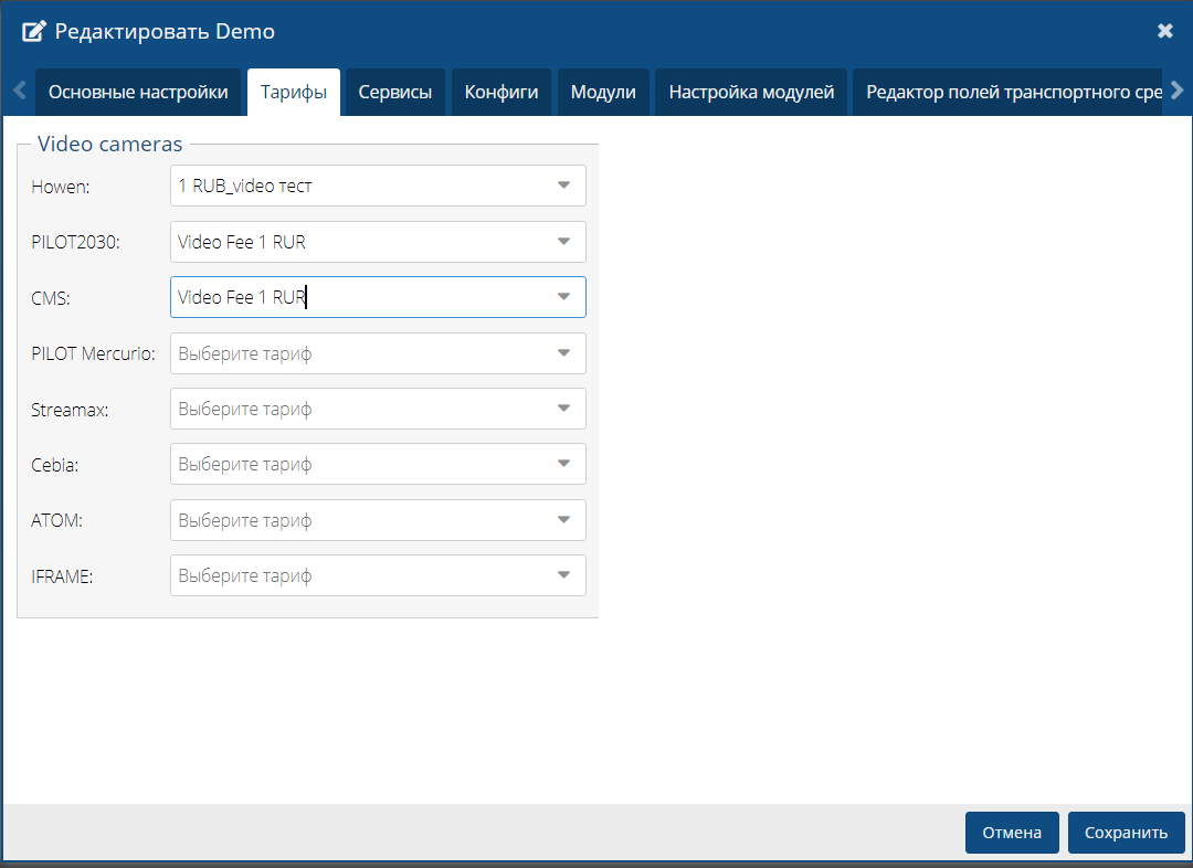 Раздел с прайсами для видеоустройств, доступен только при условии активации модулей Видео и CMS.