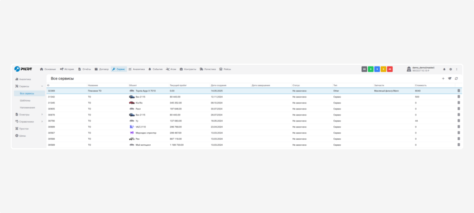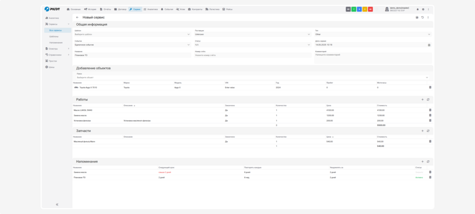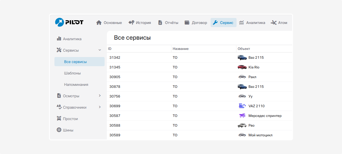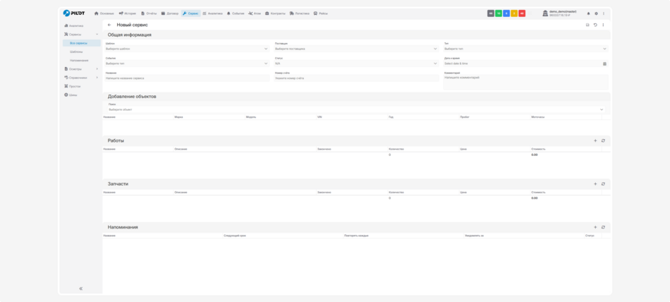 Во вкладке «Сервисы» вы можете вести учёт всех сервисных работ, создавать шаблоны и напоминания. Давайте разберёмся, как с этим работать: