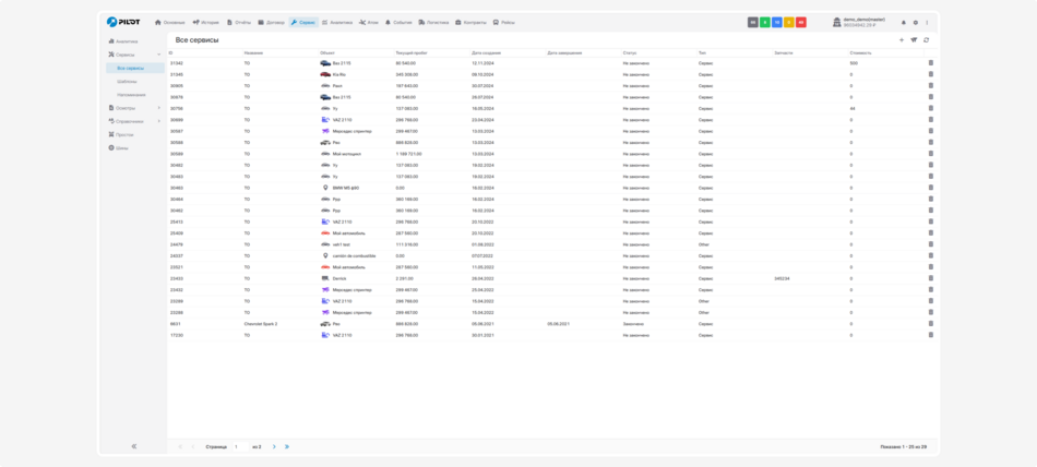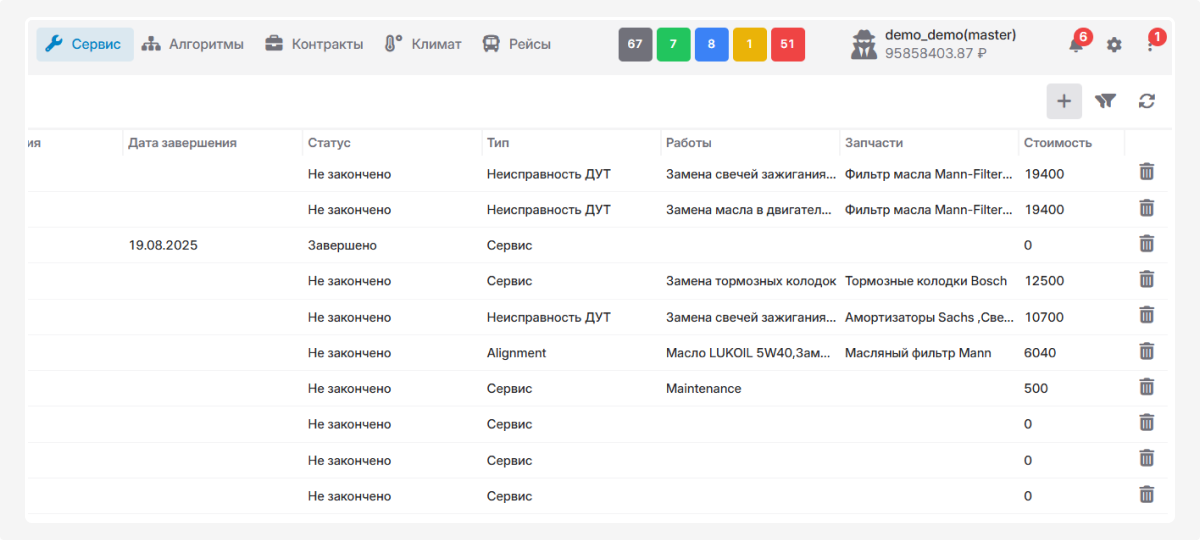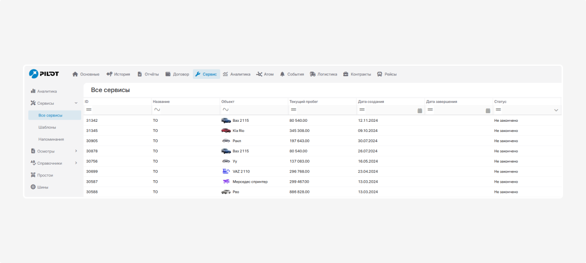 Здесь отображаются все записи о проведённом сервисном обслуживании, которые вы добавили в систему.