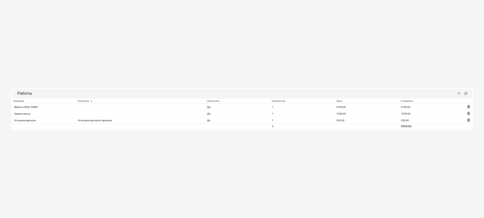 Добавленные работы появятся в списке. Внизу будет рассчитана общая сумма по всем работам в этом сервисе.