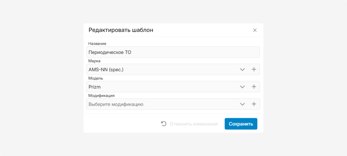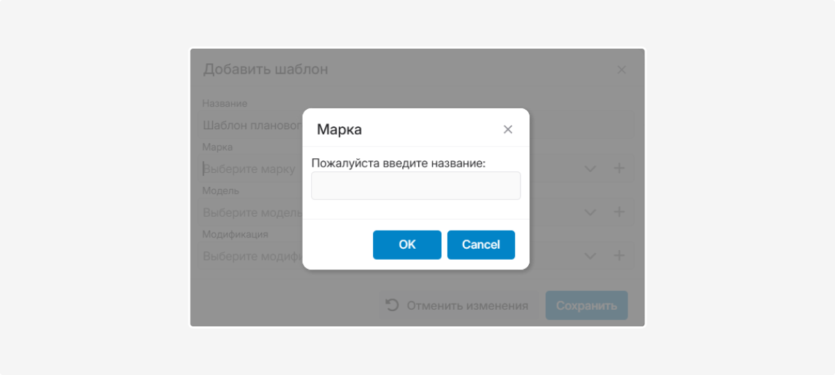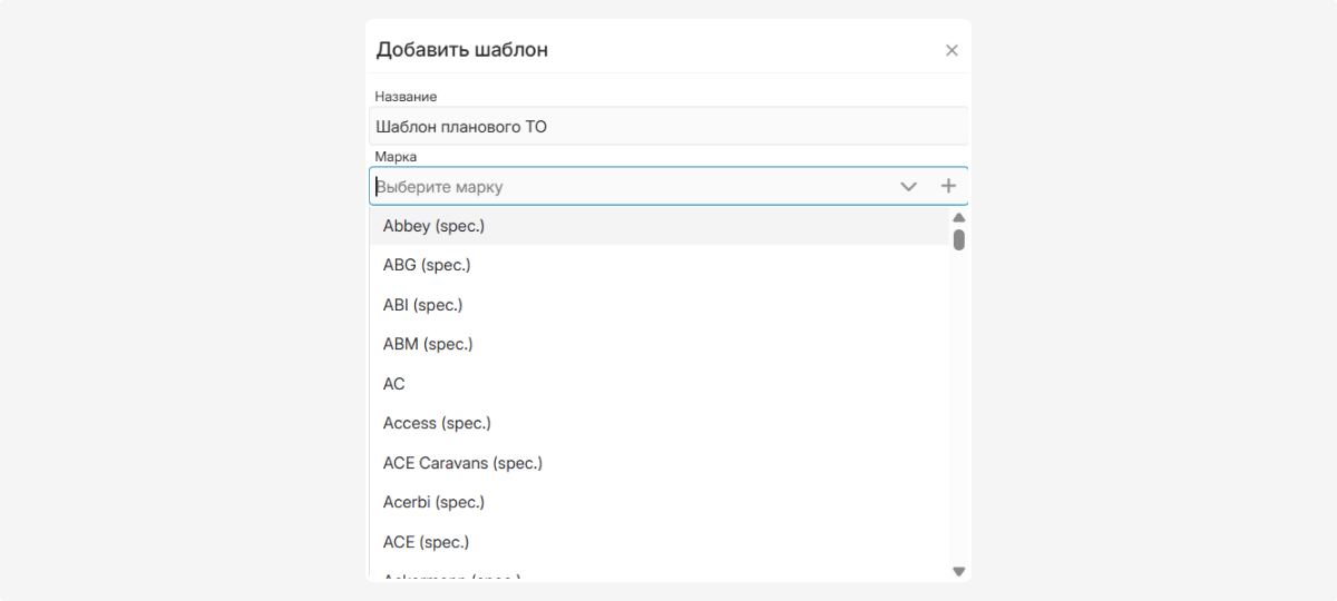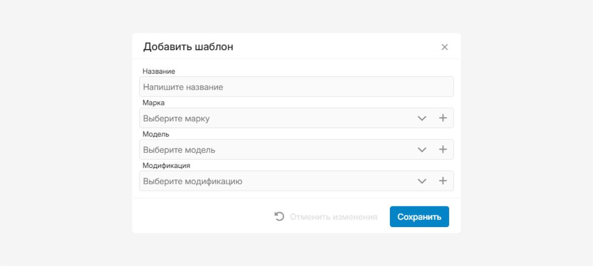 4. При желании выберите из списка марку, модель и модификацию транспортного средства, к которому будет относиться шаблон.