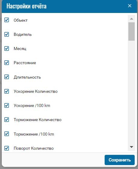 В данном типе отчёта представлена более детальная информация по качеству вождения.