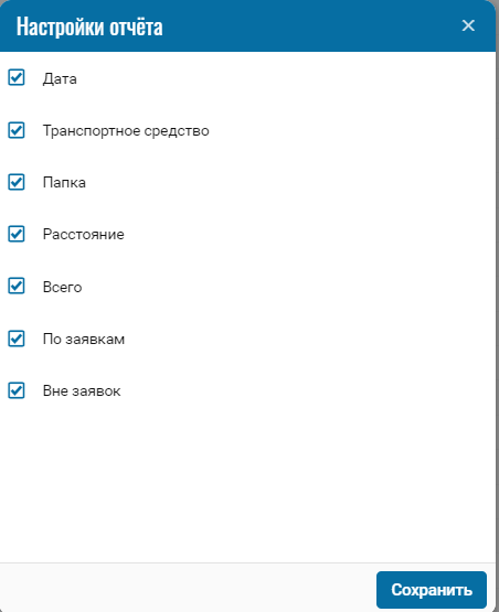Суммарный отчет отображает данные по суммарному пробегу по заявкам.