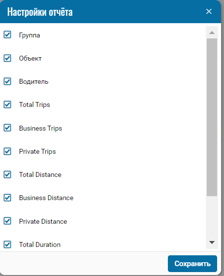 Расстояние по деловым поездкам - пробег для деловых поездок за указанный период;
