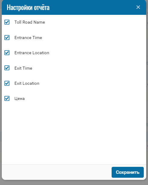 Данный отчет работает при  условии настроек платных дорог в модуле Геозоны.