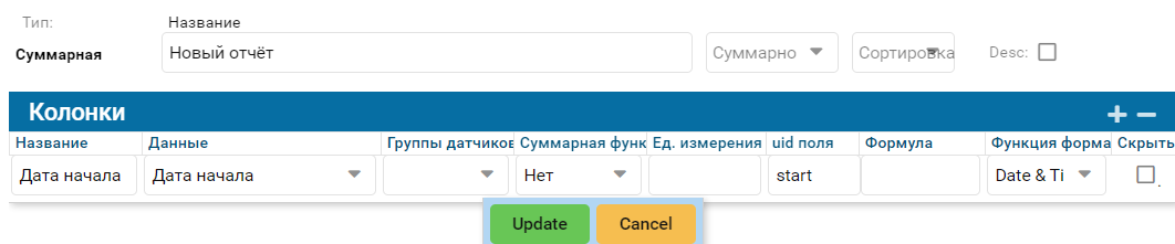 Тип Нет - при выборе функции нет, итоговые значения колонки не суммируются.