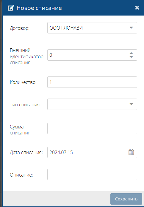 Окно списка по списаниям (расход) абонентской платы за услуги мониторинга.Вы можете проверить ежедневное списание за услуги, выбрав фильтр дат. -