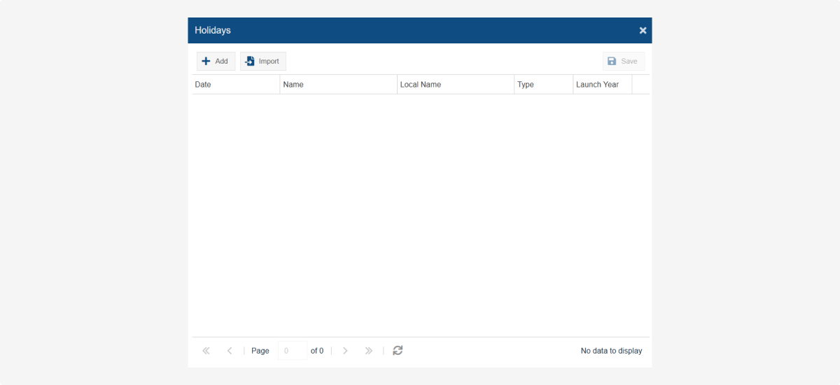 • Year (Год) – укажите год, для которого хотите загрузить список праздников