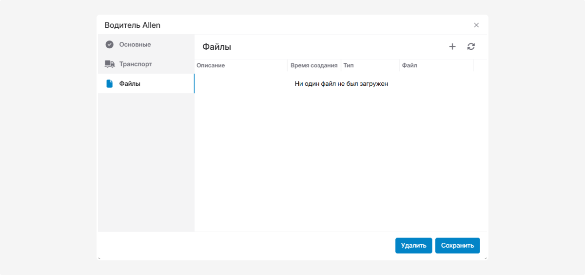 После добавления или удаления файлов не забудьте нажать «Сохранить» в карточке водителя, чтобы применить изменения.