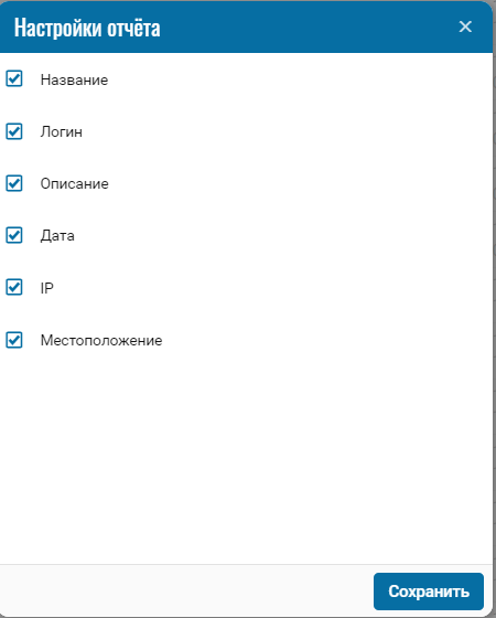 При необходимости можно отключить определённые части отчёта нажатием на иконку , при нажатии откроется меню, где можно отключить /включить определённые поля.