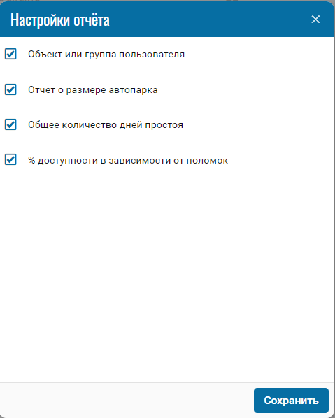 При необходимости можно отключить определённые части отчёта нажатием на иконку , при нажатии откроется меню, где можно отключить /включить определённые поля.