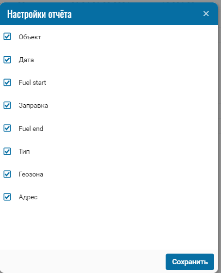 Отчет содержит информацию о заправках.