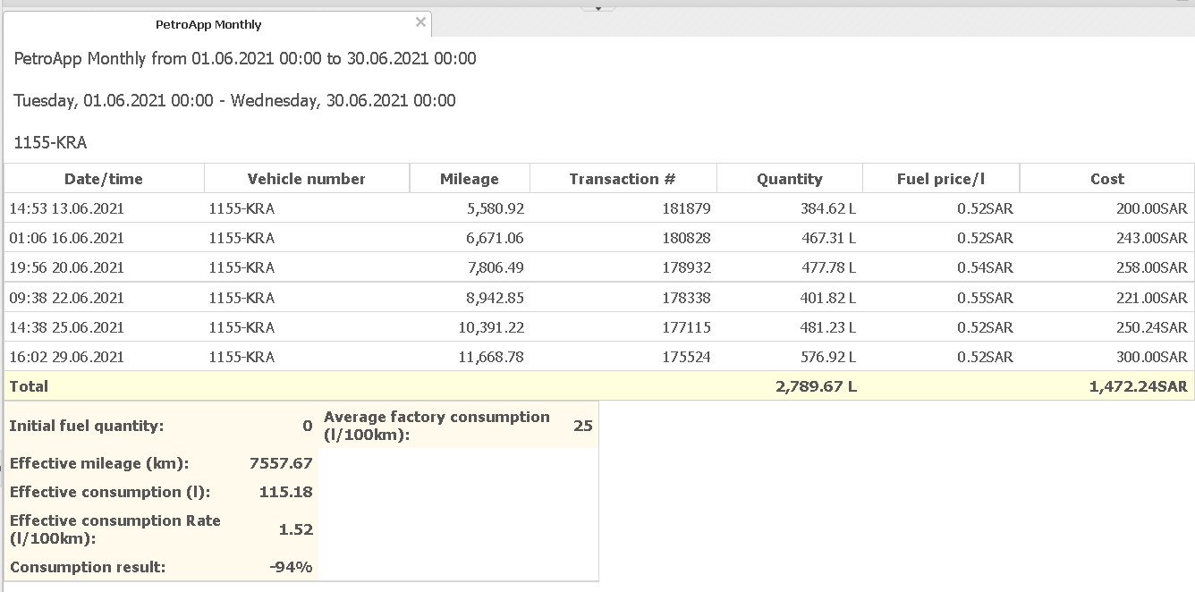 • Effective consumption (Liters) - сумма все литров из транзакций.