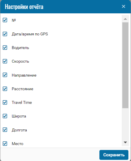 При необходимости можно отключить определённые части отчёта нажатием на иконку , при нажатии откроется меню, где можно отключить /включить определённые поля.