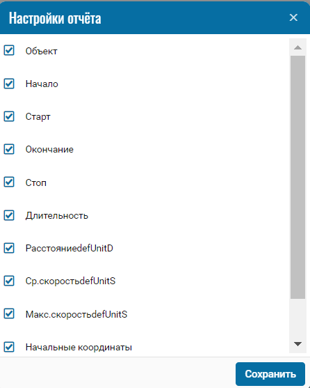 При необходимости можно отключить определённые части отчёта нажатием на иконку , при нажатии откроется меню, где можно отключить /включить определённые поля.
