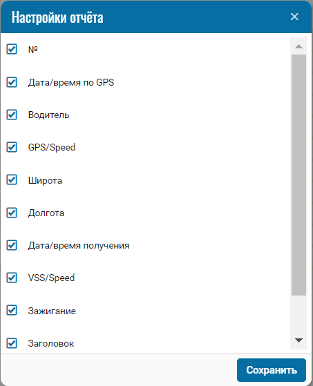 При необходимости можно отключить определённые части отчёта нажатием на иконку , при нажатии откроется меню, где можно отключить /включить определённые поля.
