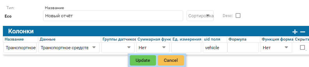 Тип Нет - при выборе функции нет, итоговые значения колонки не суммируются.