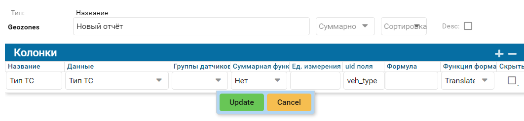 Таблица геозон
