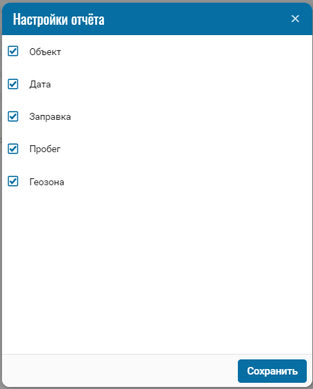 Данный отчёт предназначен для вывода заправок с геозонами.
