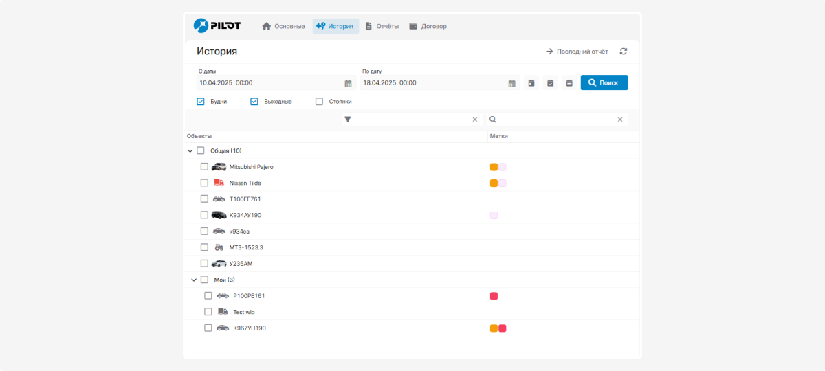 С помощью «Истории» вы увидите, где находился объект, проанализируете его маршрут и скорость движения, а также данные датчиков.