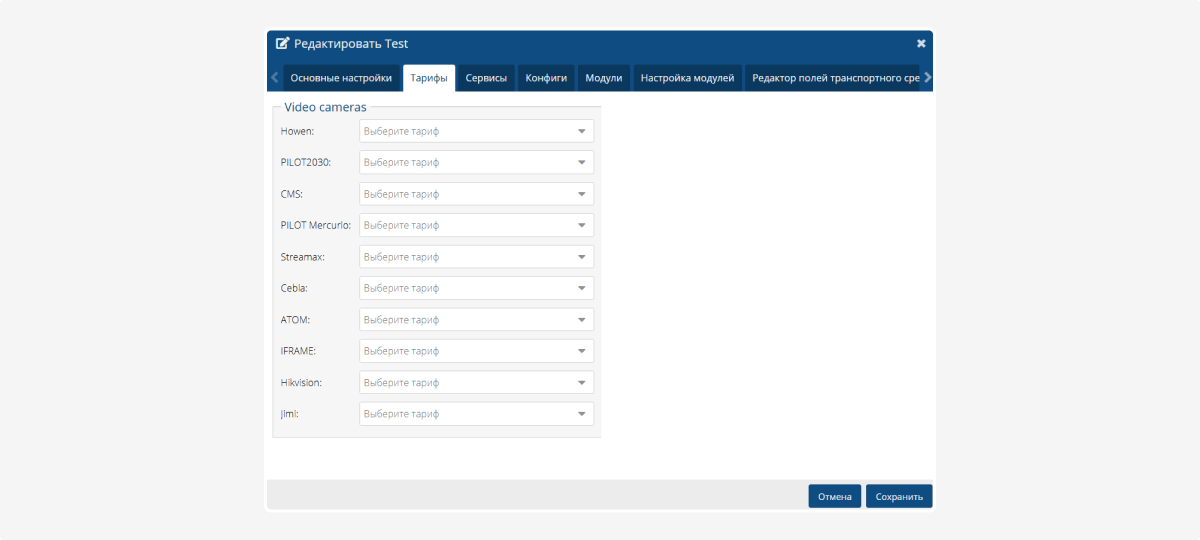 На вкладке «Тарифы» вы указываете стоимость работы подключённого оборудования.