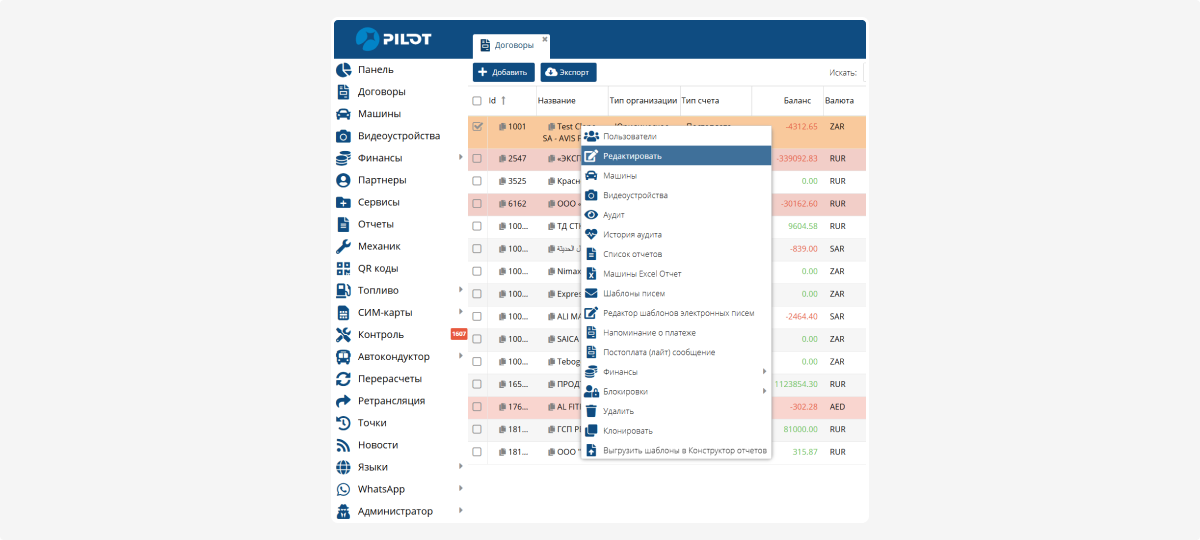 3. Нажмите правой кнопкой мыши по договору и выберите «Редактировать»