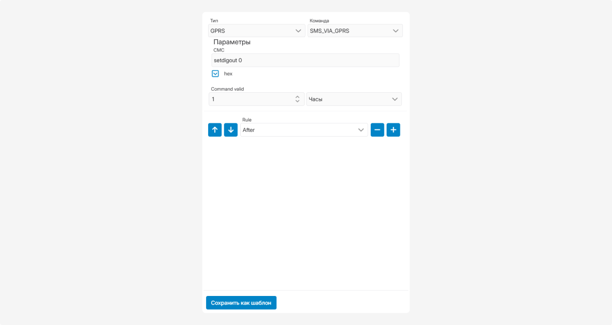 4. В поле «СМС» введите текст команды, например: setdigout 0 — снятие с охраны