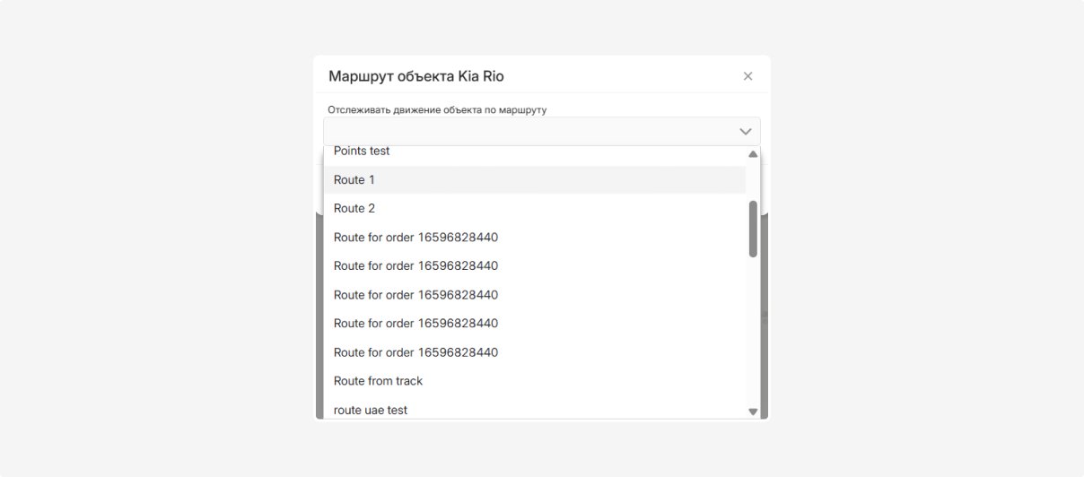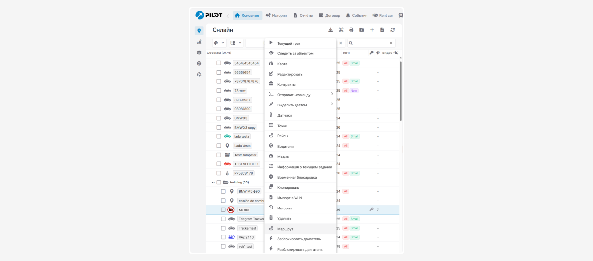 Чтобы система могла отслеживать события по маршруту и строить отчёты для конкретного объекта, нужно привязать маршрут к транспортному средству: