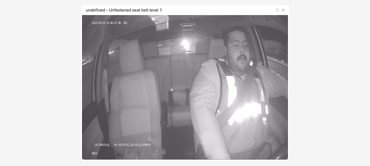 Для каждого события хранится описание — например: «Непристёгнутый ремень», «Усталость за рулём»