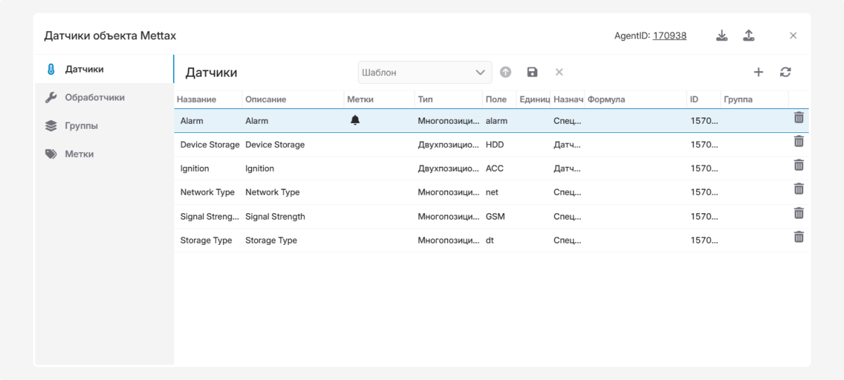 Когда вы создаёте объект и применяете глобальный шаблон настроек (например, для устройств CMS), в объекте появляется многопозиционный датчик Alarm.