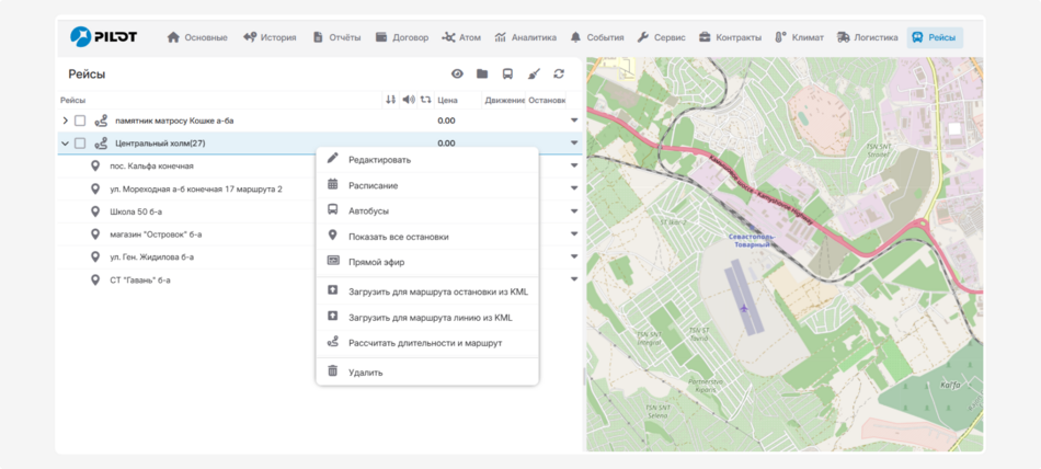 • Кликните правой кнопкой мыши по нужному рейсу в списке и выберите «Расписание» в появившемся меню
