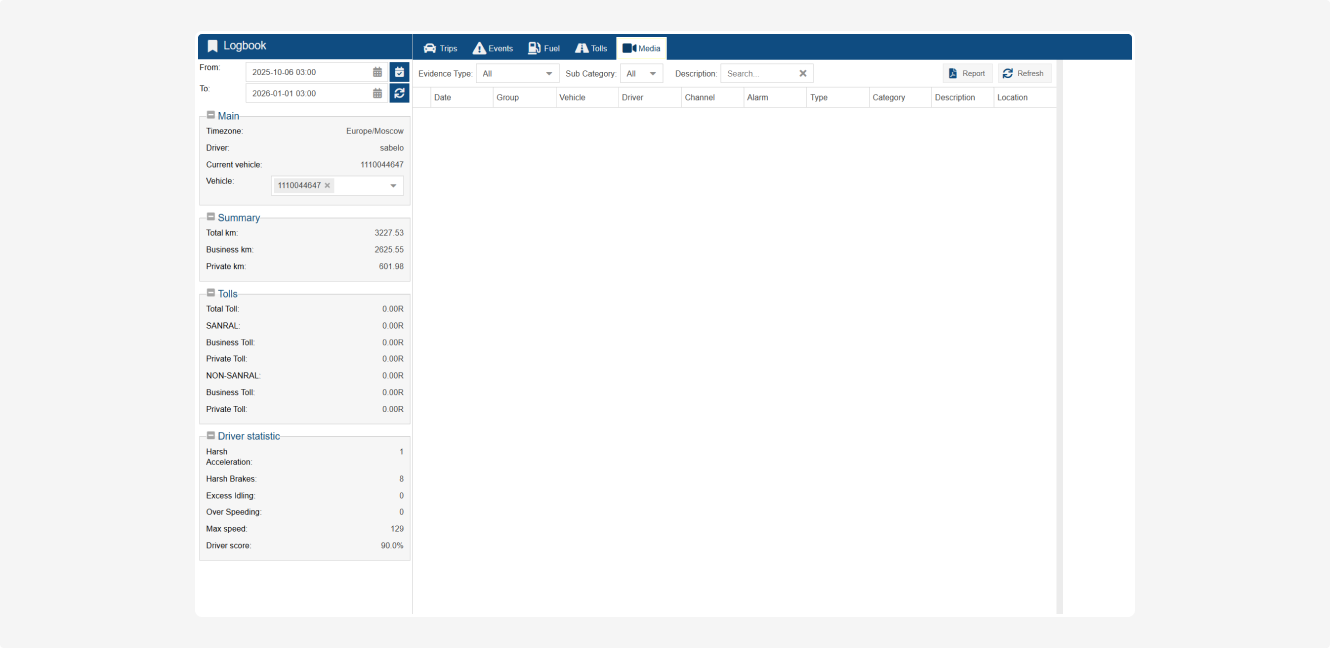 Раздел Media предназначен для работы с видео и фото с бортовых камер транспорта.
