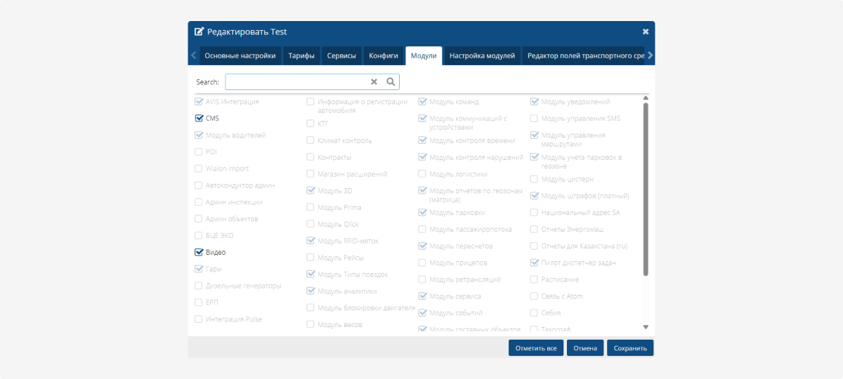 6. Установите галочки напротив модулей «Видео» и «CMS»