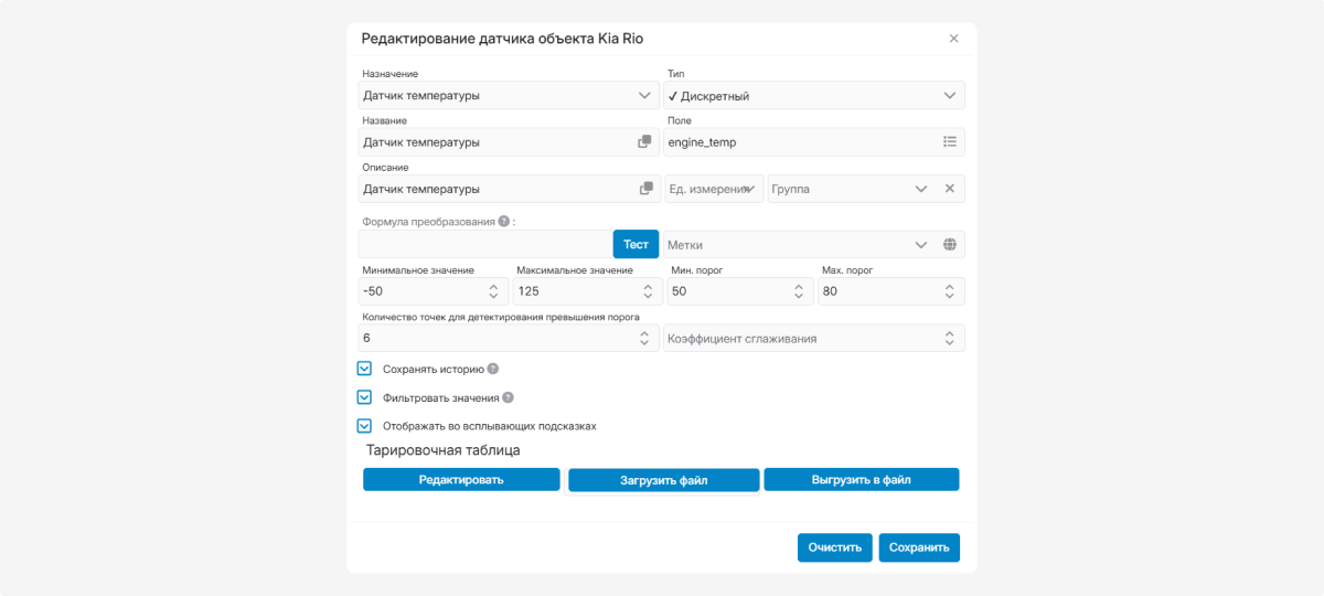Настройка датчика температуры помогает получать точные данные о состоянии техники или транспорта. Правильная настройка датчика и указание рабочих диапазонов помогает автоматически фильтровать некорректные значения, чтобы вы видели только достоверную информацию.