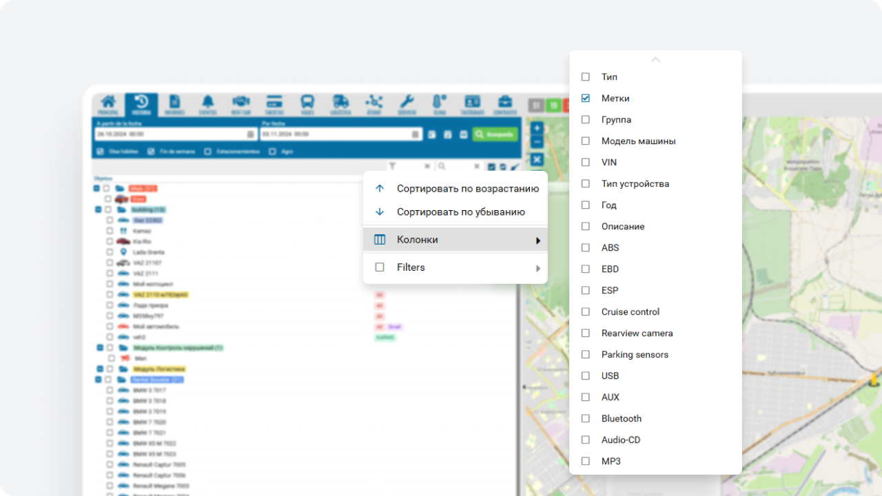 Появилась возможность фильтрации по дополнительным полям, которые вы создаёте для транспортных средств и водителей. При добавлении нового поля в редакторе полей автоматически становится доступна функция поиска и фильтрации по этому параметру.