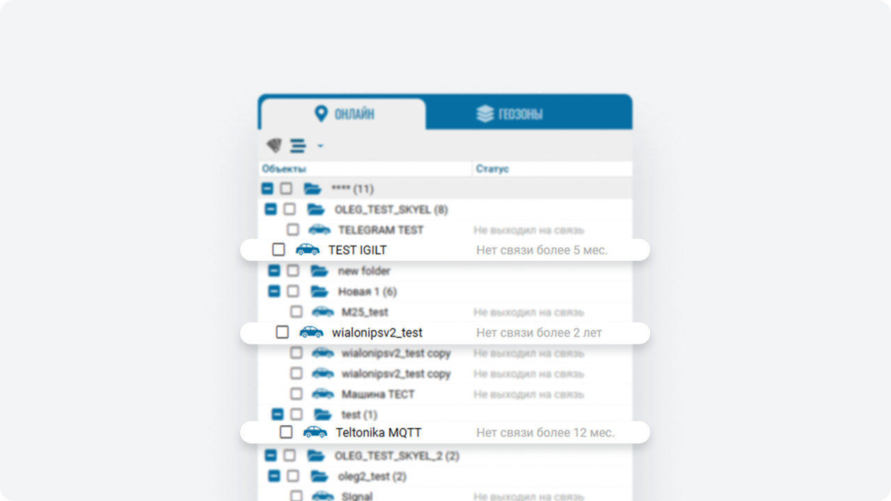 Улучшили отображение статуса «Нет связи». Система показывает точное время отсутствия подключения в часах, днях, месяцах.