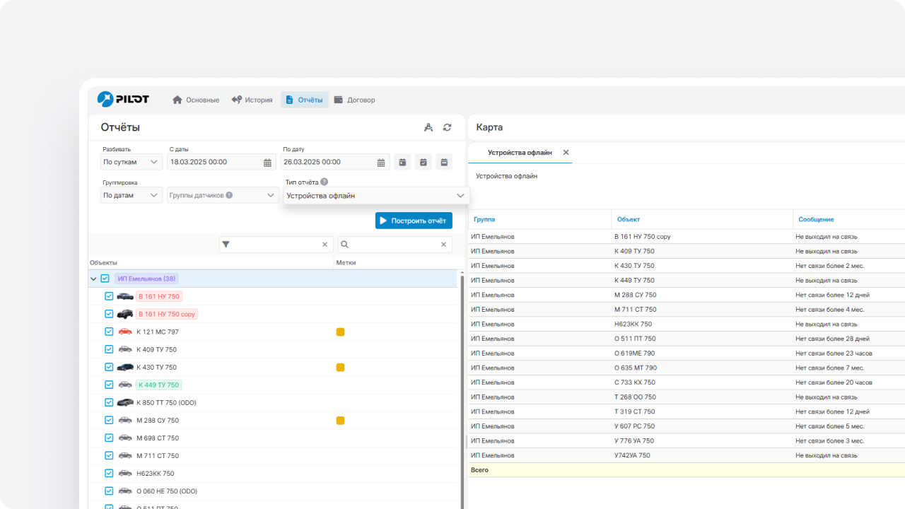 Создали новый отчёт «Устройства офлайн». В нём отражается список объектов, с которыми в данный момент отсутствует связь. Используйте этот отчёт в «Планировщике отчётов» для автоматического формирования и отправки по расписанию.