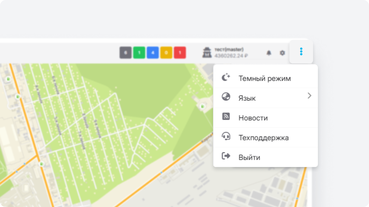 Все редко используемые функции, такие как выбор языка, переключение темы, просмотр новостей, обращение в техподдержку, теперь собраны в одном меню. Такое решение освобождает экран для основных функций и делает интерфейс простым и понятным.